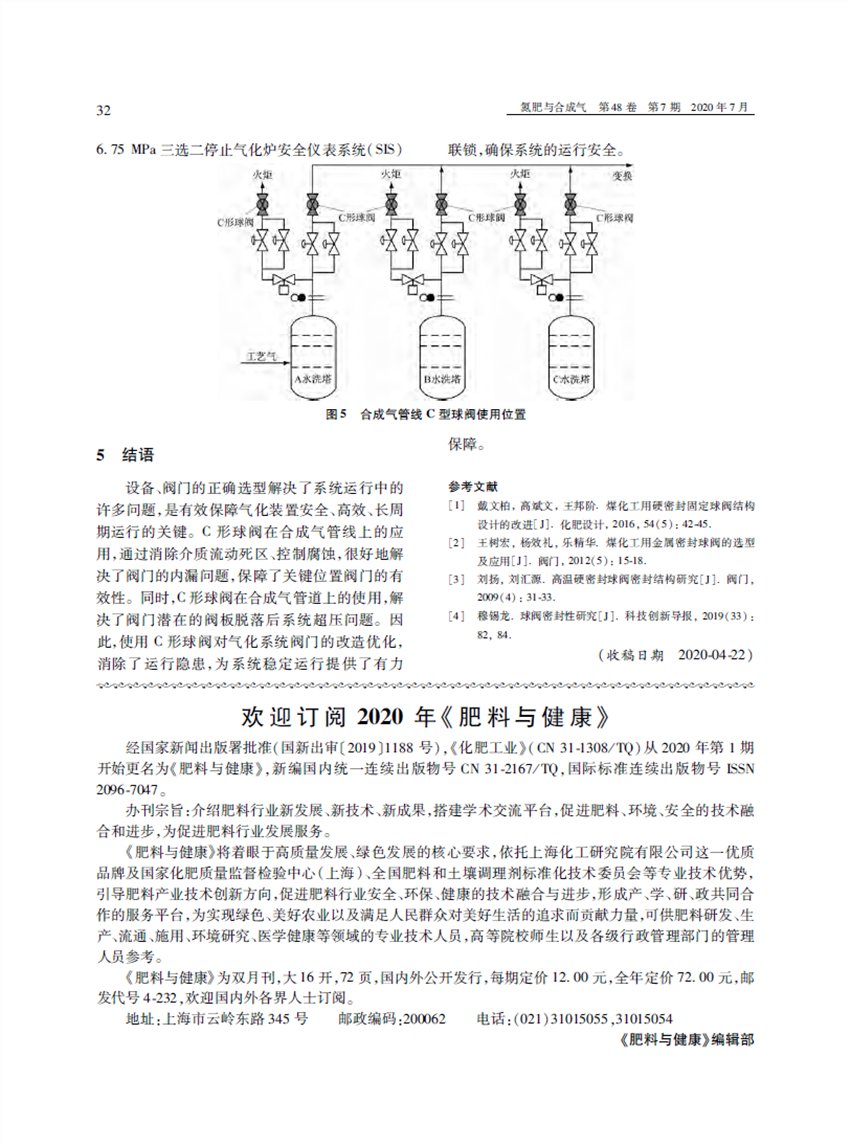 自2015年万华化学集团烟台生产基地在水洗塔出口至火炬合成气放空管线上试用三台600LB,20"的C型耐磨球阀开始,至今年上半年宁夏宝丰能源集团60万吨/年煤制烯烃项目气化装置合成界区总管线上600LB,32"大口径C型耐磨球阀成功运用,C型耐磨球阀在国内众多企业煤气化装置合成气管线上得到成功应用,并取得了很好的使用效果。